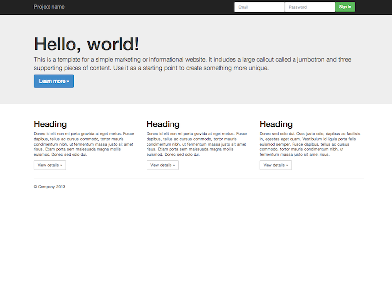Copy the HTML below to begin working with a minimal Bootstrap document.